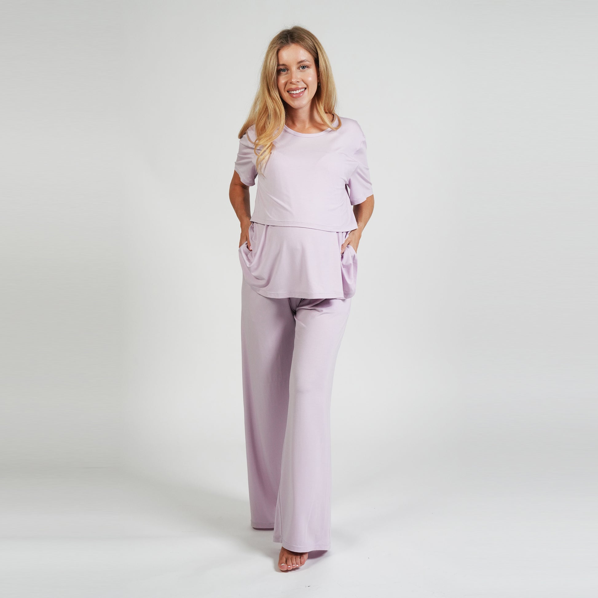 You don’t have to wait to wear it. The relaxed fit and lightweight fabric make it perfect for work, errands, or a quiet day at home, even before your bump shows.